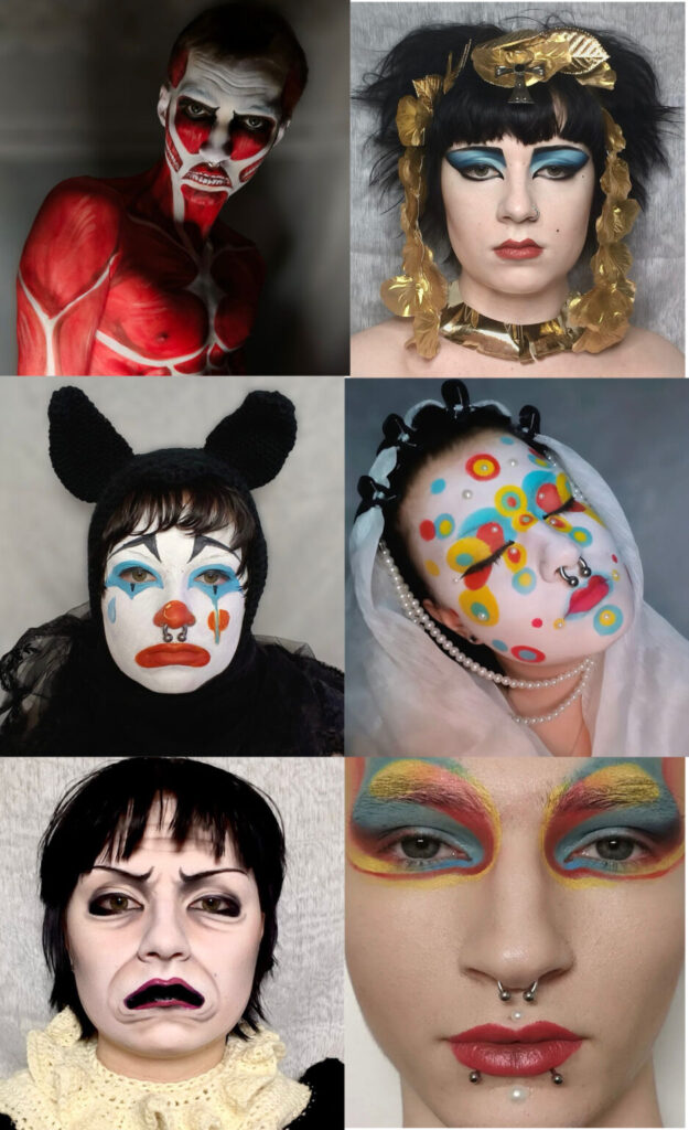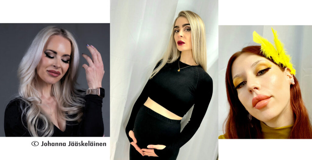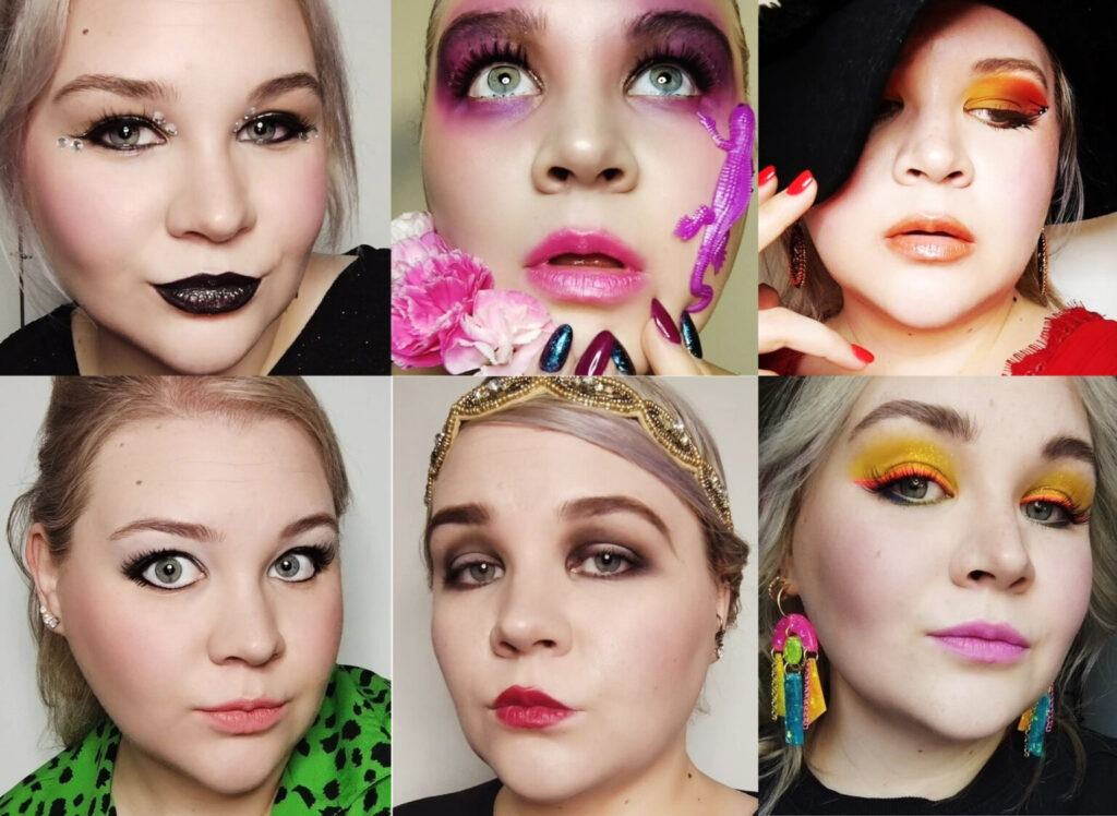 Opiskelija Lotta Hynösen töitä Kauneusmeikkaajan 3 kk verkkokoulutusjaksolla:
